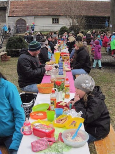 Jeder deckt den Tisch mit den von zu Hause mitgebrachten Osterköstlichkeiten. Auch an die Getränke und den Kaffee sollte gedacht sein. Besteck und Teller bitte nicht vergessen!